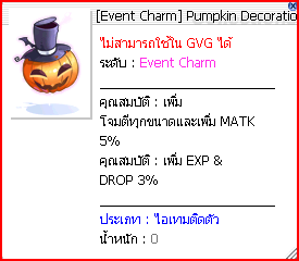 1. Event Charm Pumpkin Decoration 1 ea คุณสมบัติ ตามรูป